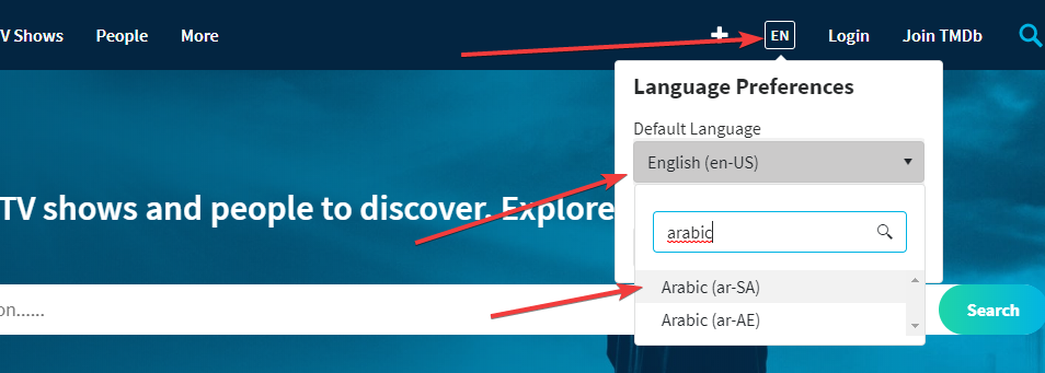 من مميزات الموقع المهمة هي إمكانية تحويل واجهة الموقع بالكامل إلى اللغة العربية كأنه موقع عربي في الأصل (لا توجد أي قاعدة بيانات عالمية توفر هذه الميزة حتى وقت كتابة هذا الشرح)